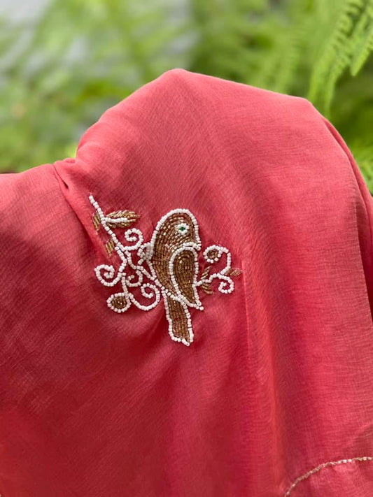 Pink sleeveless blouse with Zig Zag golden embroidery