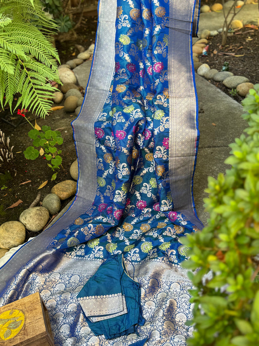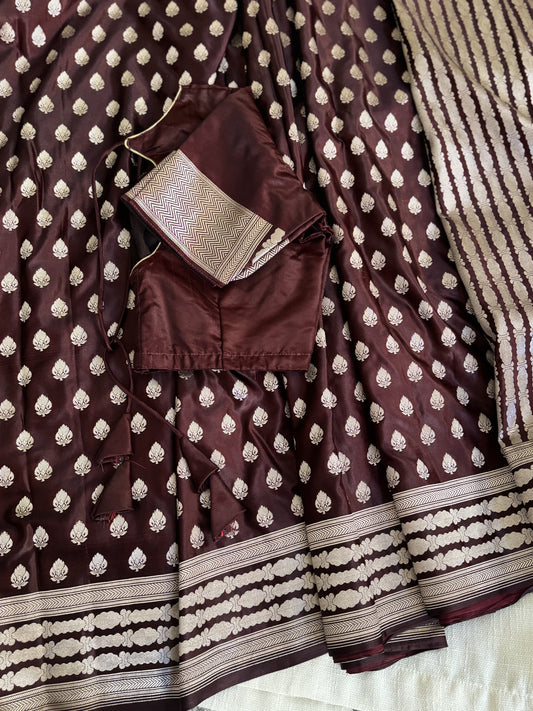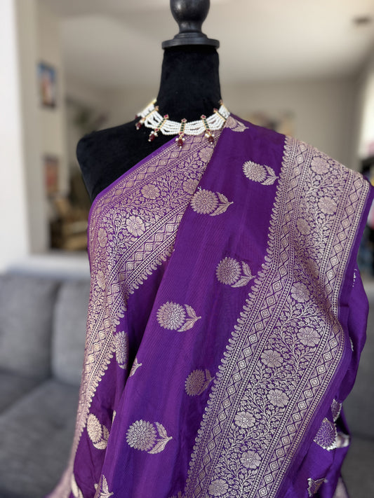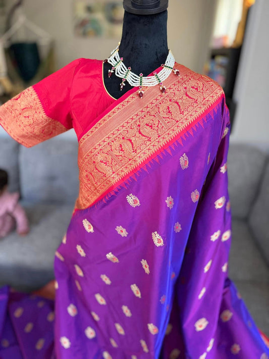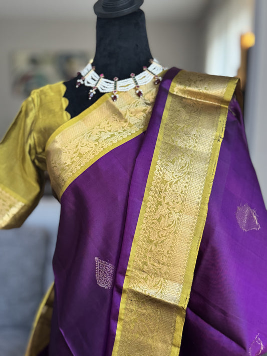 Kanjeevaram Sarees with Contrasting Borders(Dark Purple with tender Green)