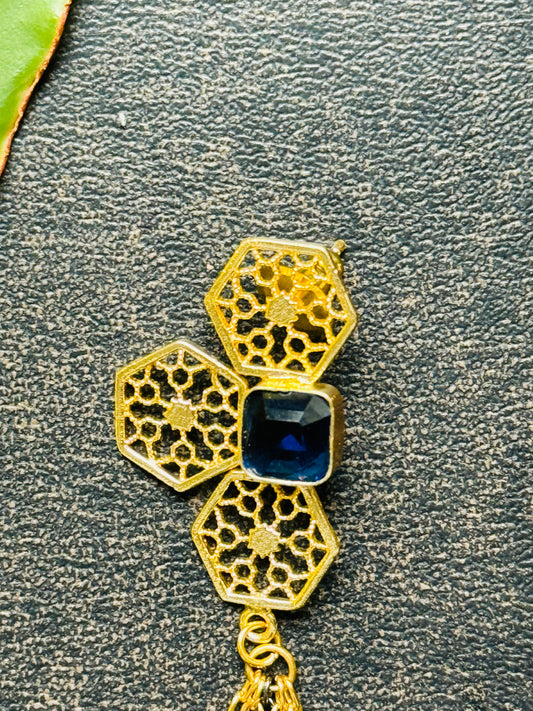 Floral Danglers with Navy Cooor Stone
