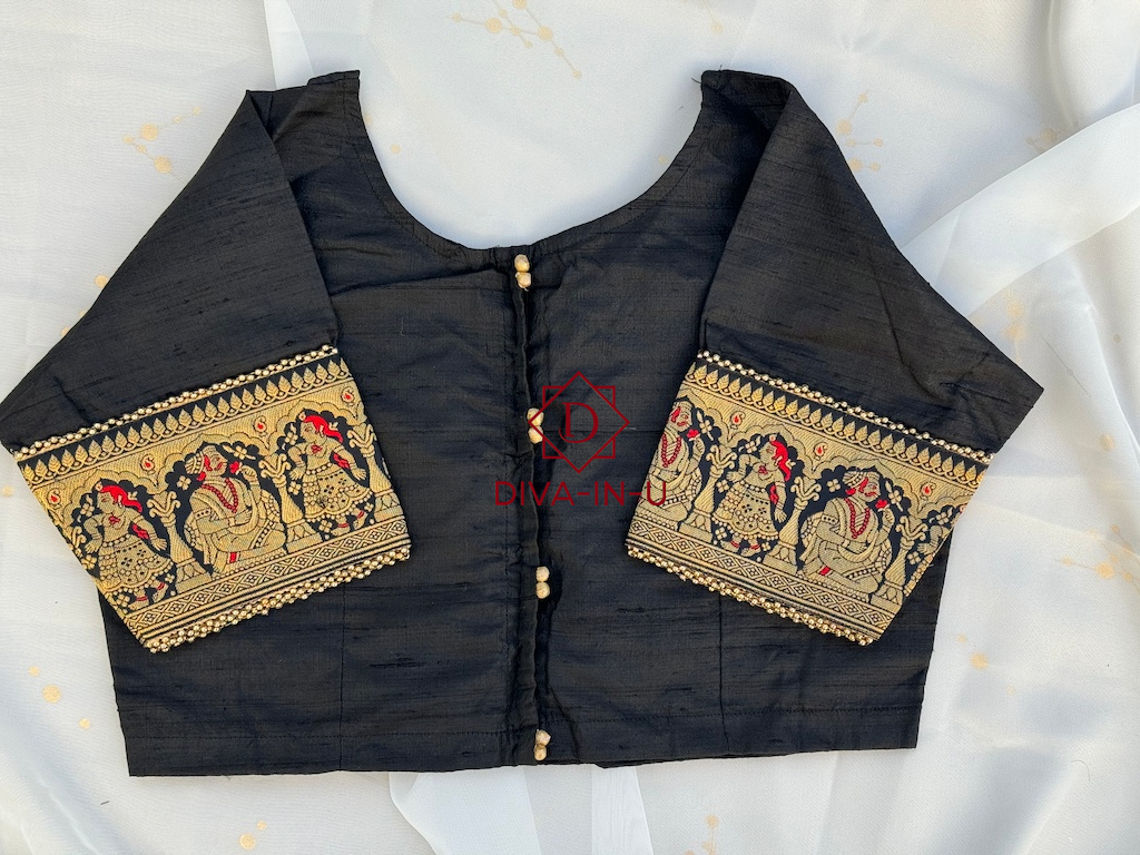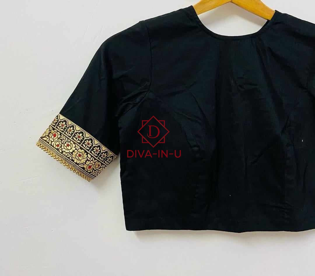 Black Blouse with Banarasi Pink Border