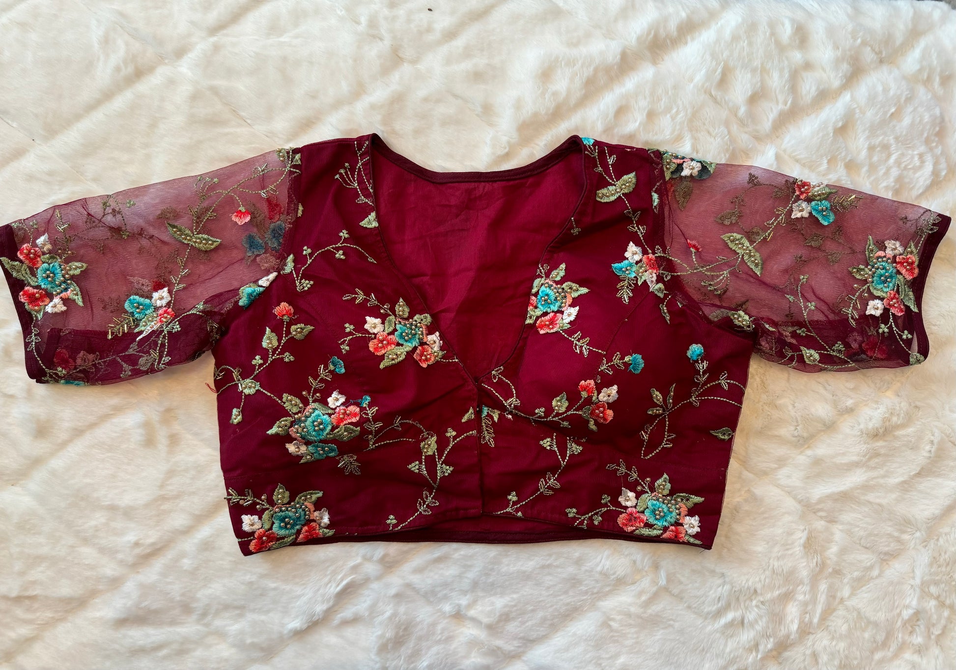 Maroon blouse with Floral Embroidery