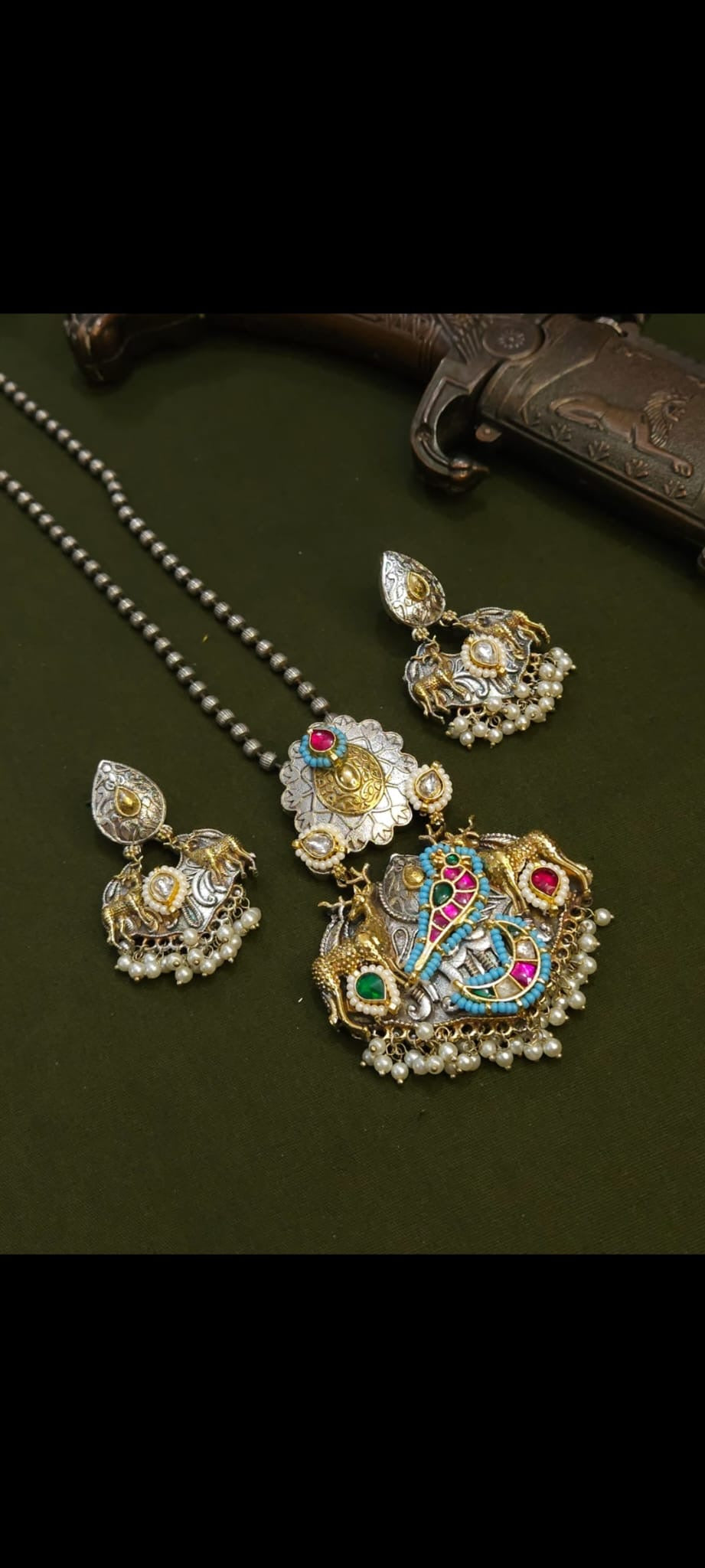 Dual Tone Long Necklace with Parrot