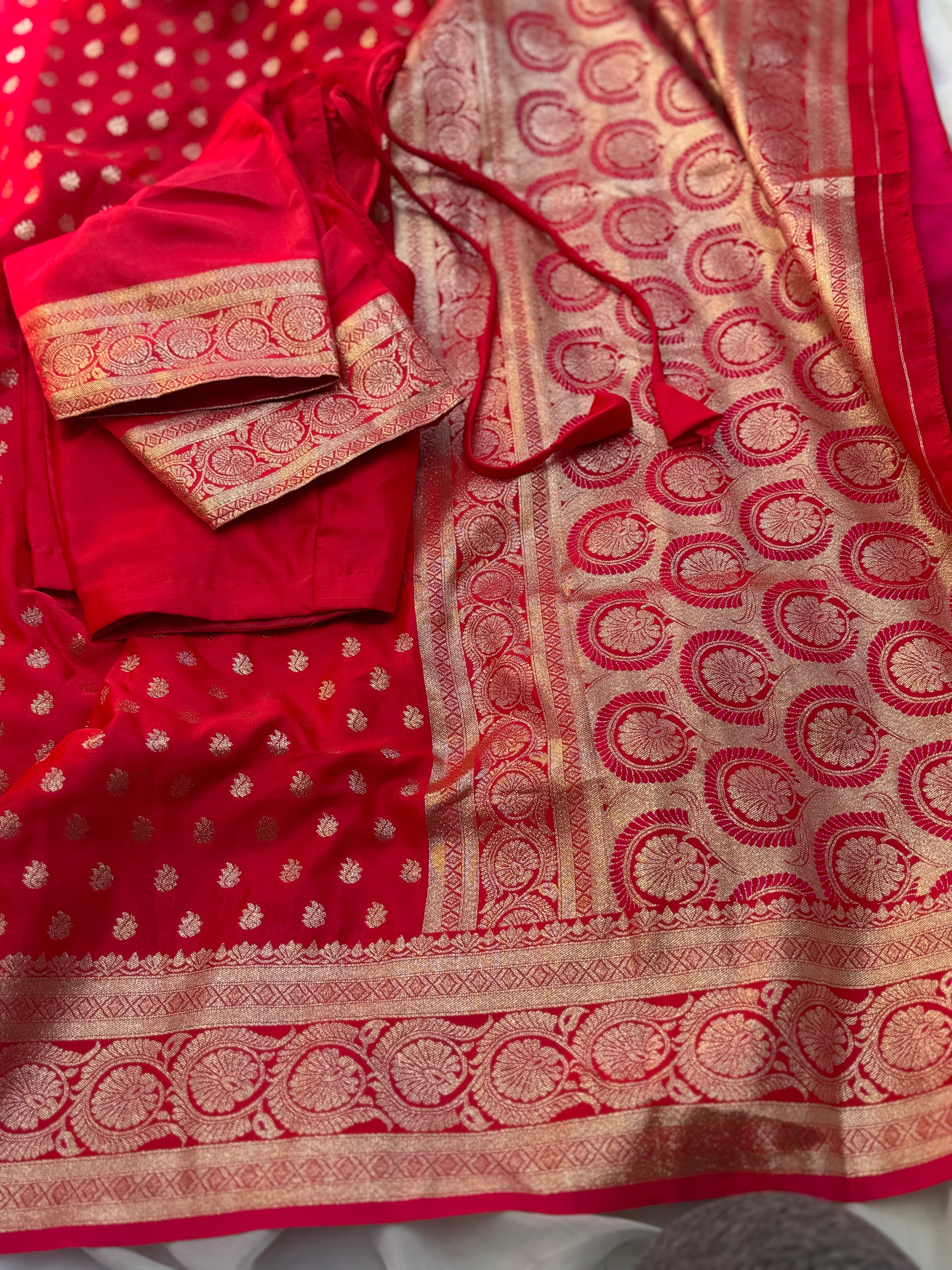 Red Banarasi Saree woth stitched blouse (Pre-stitched Saree)