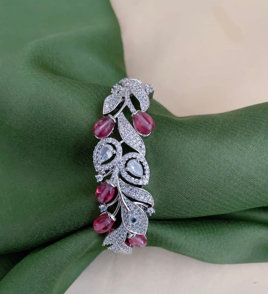 Premium quality CZ ( Cubic Zirconium) bracelets with leaves and stem design. One size for all. Openable Bracelet.